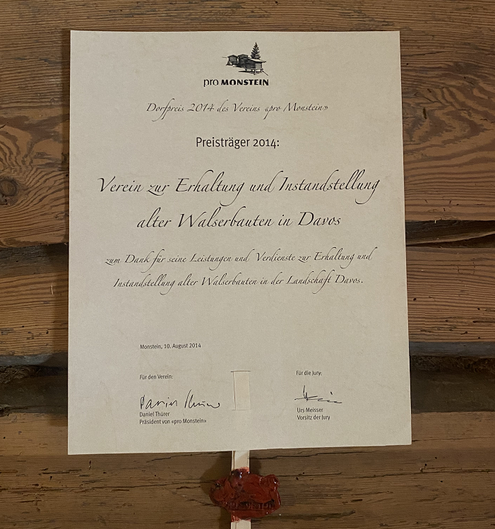 Der 1999 gegründete Verein zur Erhaltung und Instandstellung alter Walserbauten in Davos hat sich zum Ziel gesetzt, solche historisch wertvollen Gebäude zu erhalten.